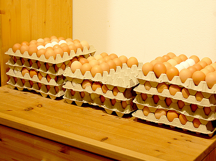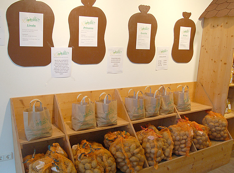 Bei uns finden Sie neben Kartoffeln und Geflügelfleisch, Marmeladen, Eier ("besonders tiergerecht - Haltungsstufe 4"),