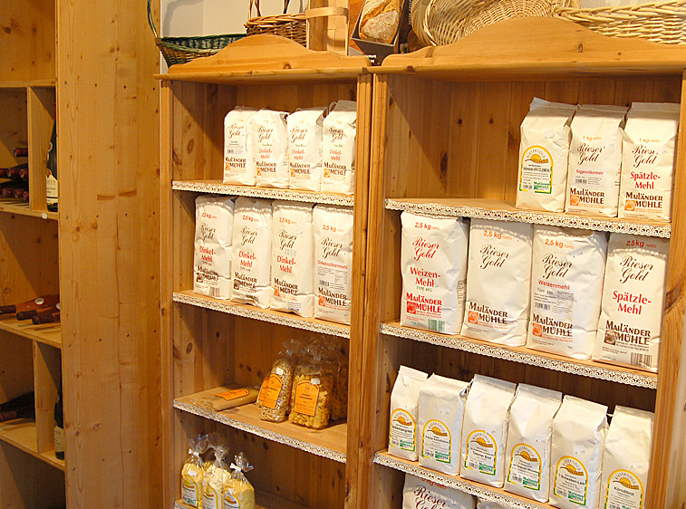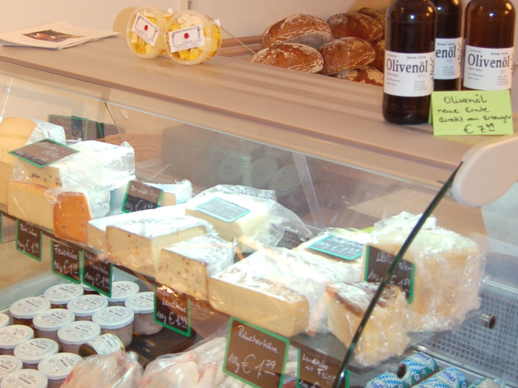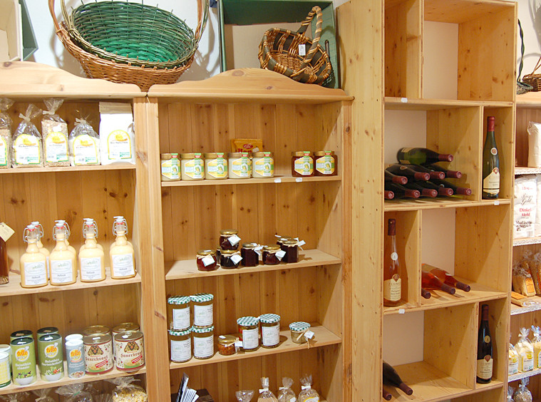 Nudeln, Holzofenbrote, Milch, verschiedene Käsesorten, Wurstwaren, Olivenöle Apfelsaft, von unserer eigenen Steuobstwiese uvm.